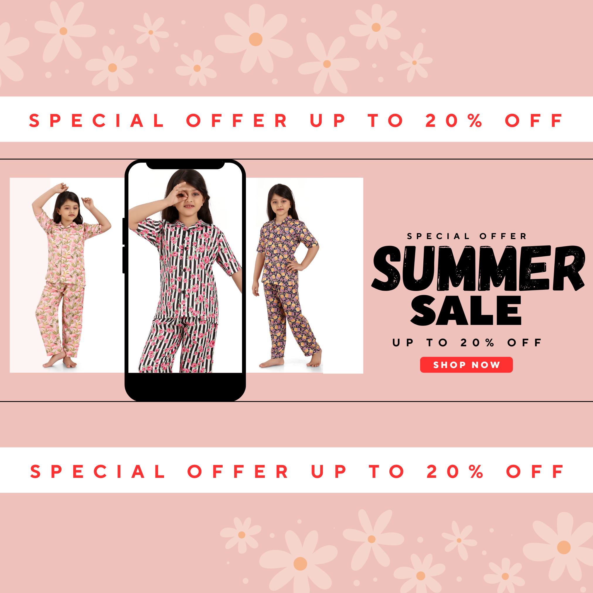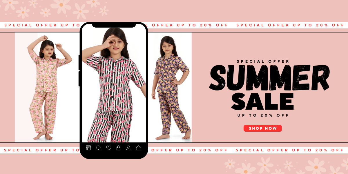 B&B Feather Soft Cotton Printed Half Sleeve Kids Nightwear Night Suit Shirt and Pyjama Combo Set - Pink Striped Floral- Regular price